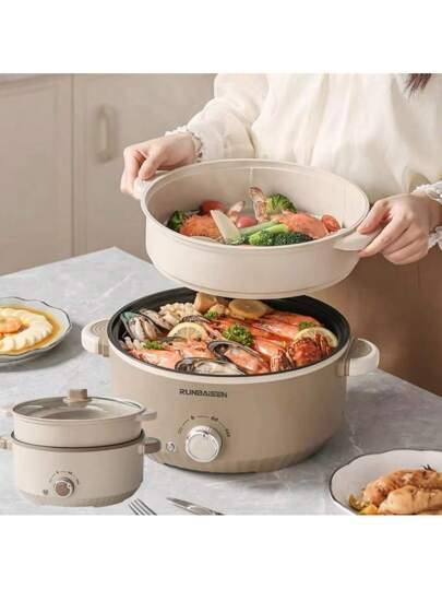 RAF 3升多功能电饭煲,单/双层电饭煲,适用于火锅,1-3人家用不粘锅,火锅电饭煲,炊具,家用电器,加热迅速,易于清洁 - 美規A型插(110-127V) - 查看 6