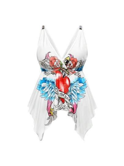 ROMWE Grunge Punk Y2K 风格复古自然植物藤蔓印花不对称下摆细肩带大码背心