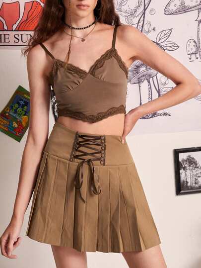 ROMWE 手帕下擺吊帶上衣和繫帶百褶半身裙 - 彩色 - 查看 1