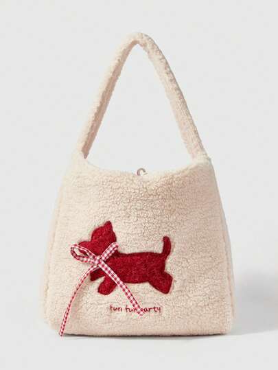 ROMWE Kawaii 时尚卡通双面单肩毛绒包 - 白色 - 查看 1