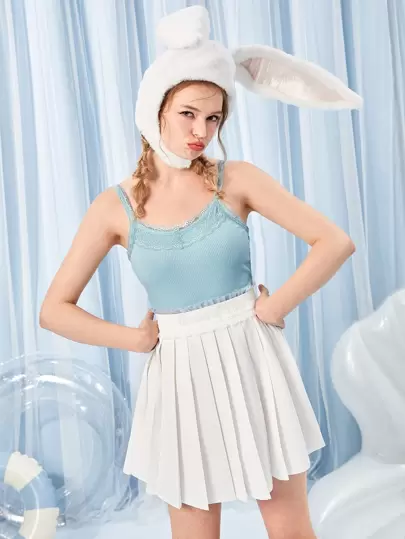 ROMWE Kawaii 蕾絲邊吊帶上衣 - 藍色 - 查看 1