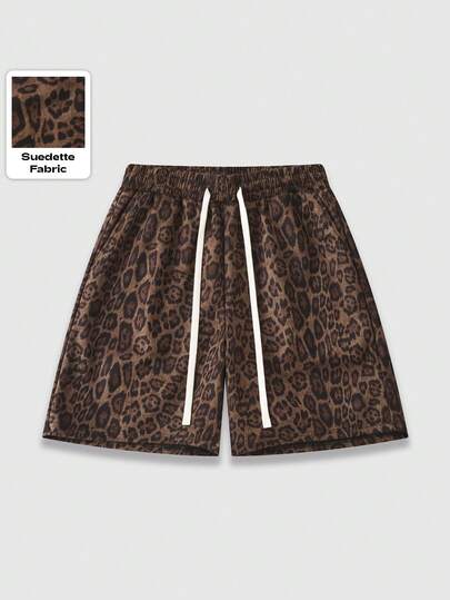 ROMWE MEN 男士抽绳腰带豹纹宽松休闲通勤短裤 - 棕色 - 查看 1