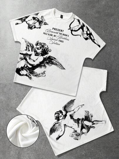 ROMWE MEN 男士文艺复兴印花圆领休闲短袖T恤 - 白色 - 查看 10