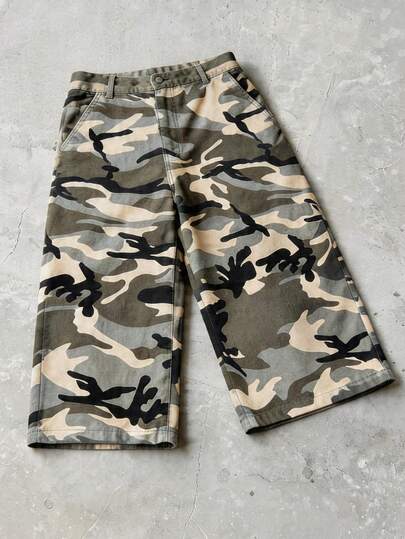 ROMWE MEN Street Life 男士夏季休闲时尚街头迷彩印花侧袋宽松牛仔短裤