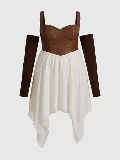 ROMWE PUNK 大碼雙色不對稱下擺洋裝 - 彩色 - 查看 1