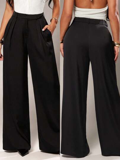Radiana 大码女式极简时尚深咖啡色阔腿裤,通勤裤,棕色阔腿裤,高腰阔腿裤,棕色西装裤,秋冬季