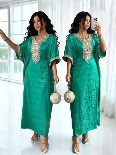 Rafferiza 女士缎面系带蕾丝拼接连衣裙,春夏款 - 綠色 - 查看 1
