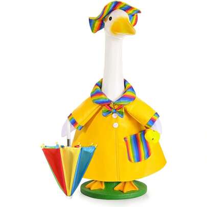 23英寸水泥鹅雕塑,户外花园草坪露台装饰艺术品,带防雨罩的鹅雕像