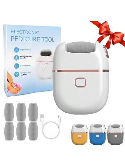可充电电动磨脚器,电动去茧器,配备6个可替换磨头,加厚磨头适用于较厚的磨面,USB充电,500mAh锂电池持久耐用,便携易用,护肤,适用于干裂肌肤,手足护理工具,馈赠佳品 - 彩色 - 查看 1