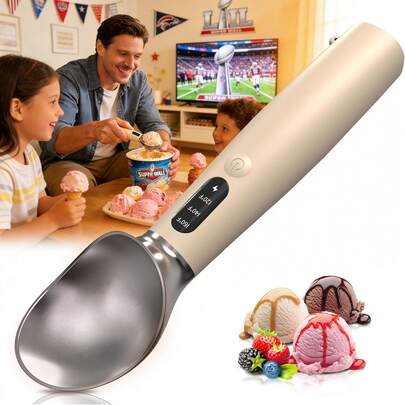可充电电动加热冰淇淋勺,带LED显示屏和挂环,IPX7级防水,3种加热模式,最高温度160°F(71°C),符合人体工程学的防冻手柄,易于清洁,适用于冰淇淋、冻酸奶、冰棒等。 - 黃色 - 查看 13