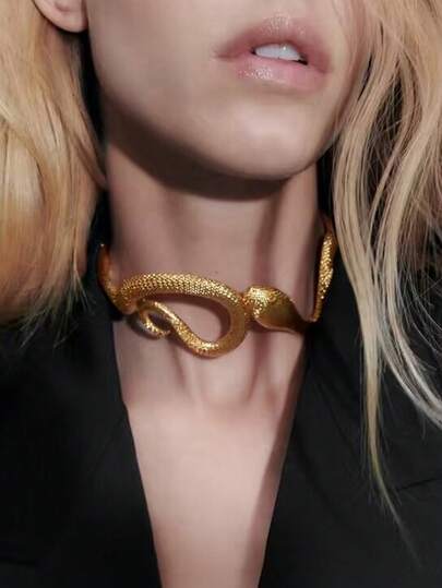 ZAA 蛇形锁骨链 夸张金属风格项链 立体蛇形个性项链 不对称复古项链 嘻哈配饰 - 金色 - 查看 1