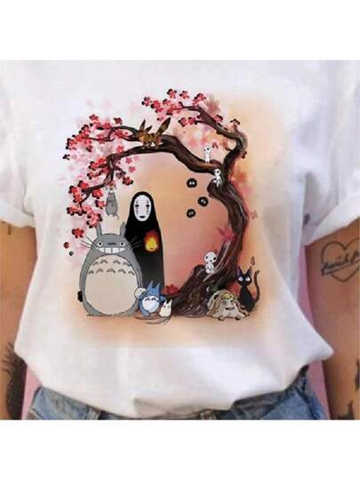 Summer Men And Women Short-Sleeved Studio Ghiblis Totoros T-Shirt Harajuku Kawaii Totoros Ghiblis Comfortable Casual T-Shirt - 白色 - 查看 5