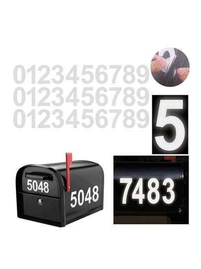 可反光的信箱/門牌號碼貼紙,3英寸/4英寸,印刷貼紙標籤 - 白色 - 查看 5