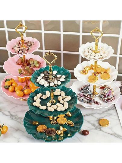 可拆卸轻质塑料甜点展示架 - 优雅三层蛋糕架,多层展示架,适用于生日、派对、婚礼和商业用途 - 彩色 - 查看 1