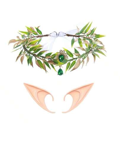 文艺复兴仙女皇冠 - 森林仙女皇冠头饰,手工森林树叶戒指饰品,复古节日,女士万圣节嘉年华服装道具,角色扮演摄影