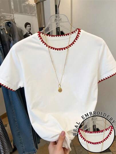 Resyla 女士休闲简约罗纹圆领短袖T恤,夏季 - 白色 - 查看 1