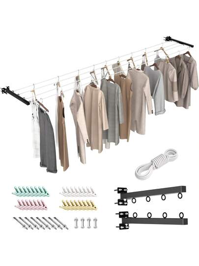 Retractable Folding Clothes Drying Rack With 20m And 30 Clips - 1 - 查看 7