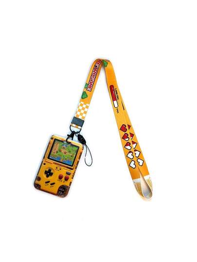 复古手持游戏机 ID 徽章夹挂绳钥匙扣项链带保护器、学校用品、返校 - 橘色 - 查看 1