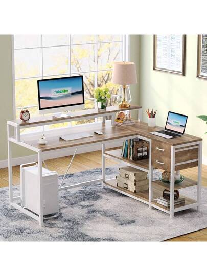 Tribesigns 55-Inch Reversible L Shaped Desk With Drawer And Storage Shelves - 彩色 - 查看 1