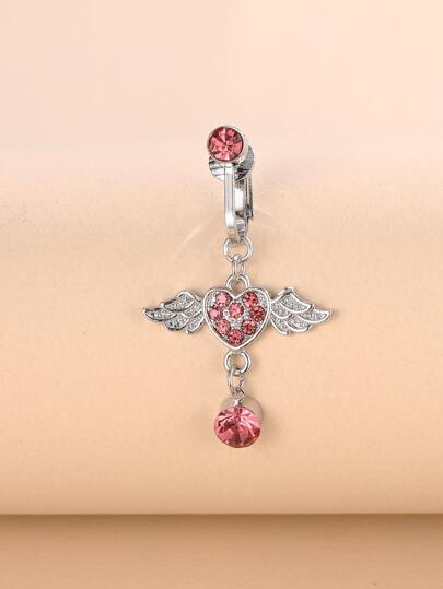 水鑽翅膀裝飾臍環中性時尚朋克身體穿刺首飾 - 銀色 - 查看 1