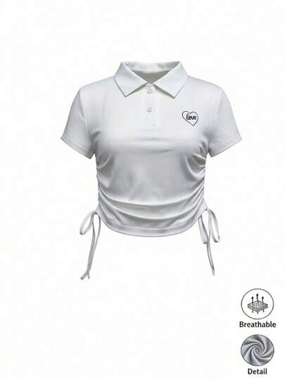 Rina Fox 女士休闲字母印花侧边抽绳T恤,夏季 - 藍色 - 查看 1