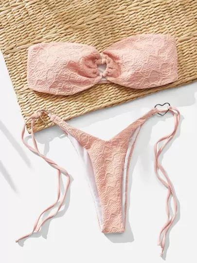 環狀聯結束頸泳衣,側邊綁帶夏日沙灘比基尼套裝 - 粉色 - 查看 1