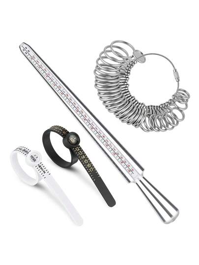 戒指尺寸测量工具套装,银色,高品质钢制戒指尺寸测量棒,尺寸 1-17/A-Z,可重复使用的带放大镜的手指尺寸测量带,尺寸 1-15 戒指尺寸测量规,易于使用,送给妻子的最佳礼物 - 彩色 - 查看 3