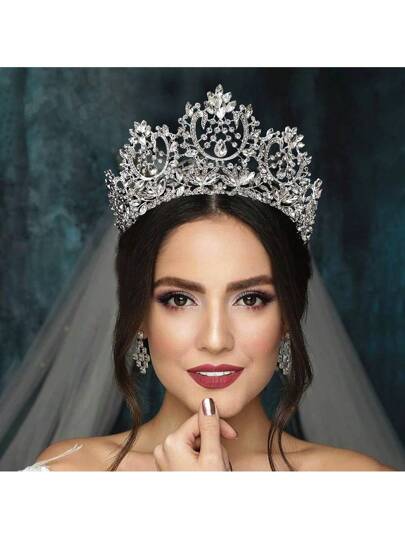 皇家風格1入組華麗鑽石新娘半圓形婚禮、派對、舞會皇冠頭飾 - A - 查看 5