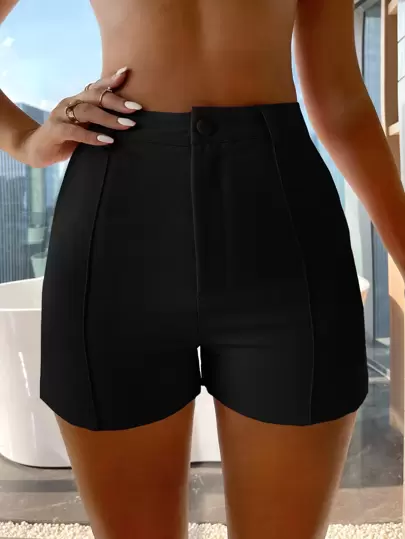 RueChic 拉鏈門襟接縫細節短褲 - 黑色 - 查看 1