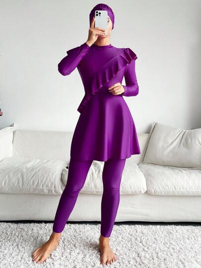 荷葉邊全罩式比基尼泳裝 - 紫色 - 查看 1