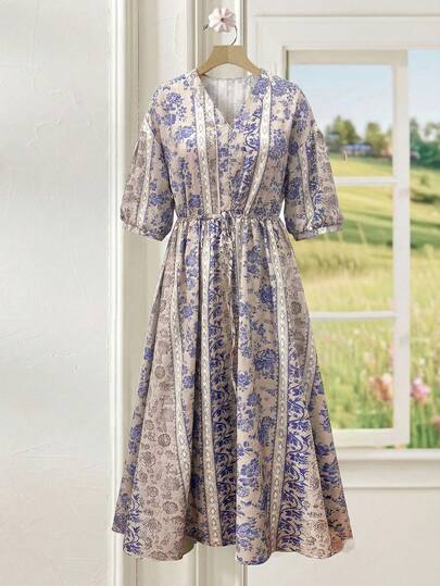 Rusticease 女士时尚扎染印花衬衫裙,春秋季长款女装套装长款衬衫裙休闲连衣裙女士长袖连衣裙 - 彩色 - 查看 1
