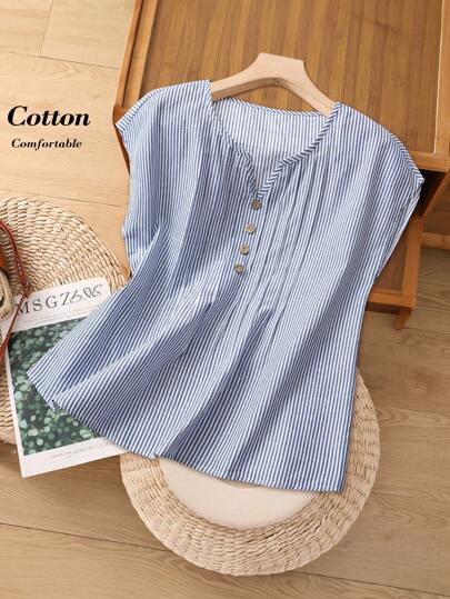 Rusticease 女士条纹衬衫,夏季时尚 - 白色 - 查看 6