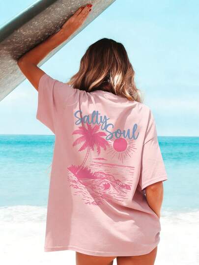 SALTY SOUL 女士春夏新款沙滩度假树木阳光印花休闲圆领短袖T恤,时尚百搭,是您日常度假的必备单品。女士度假图案T恤
