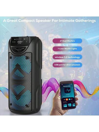 SENBOWE GTS-1550 超大音箱,双 3 英寸扬声器,户外音箱,LED 灯,可插拔卡,USB 接口,麦克风接口,大型露营音箱,便携式,无线,彩色灯光,800mAh(蓝牙:BT 音箱) - 黑色 - 查看 2