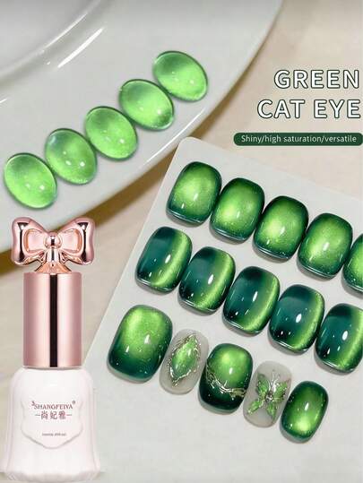 SHANGFEIYA 10毫升祖母绿猫眼凝胶指甲油,高饱和度,亮泽,UV/LED可卸式,弹簧罐磁性凝胶指甲油,适用于美甲沙龙和家庭美甲 - 彩色 - 查看 1