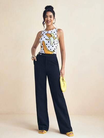 SHAQUITA GARCIA 设计师女士圆领无袖印花休闲紧身衣夏季度假 - 彩色 - 查看 1