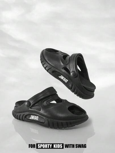 SHEIN 1 双儿童时尚百搭休闲软底沙滩/室内拖鞋,轻便方便 - 黑色 - 查看 1