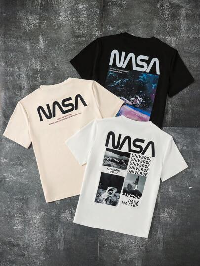 SHEIN 3 件套青少年男孩休闲街头风格圆领套头针织 T 恤,适合酷男孩,多色