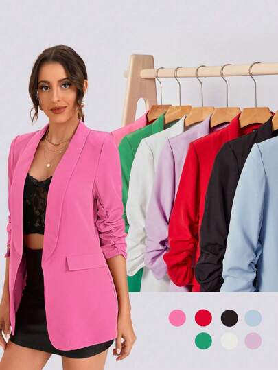 BizChic 青果領收褶袖翻蓋細節西裝外套工作服 - 中紫紅色 - 查看 1