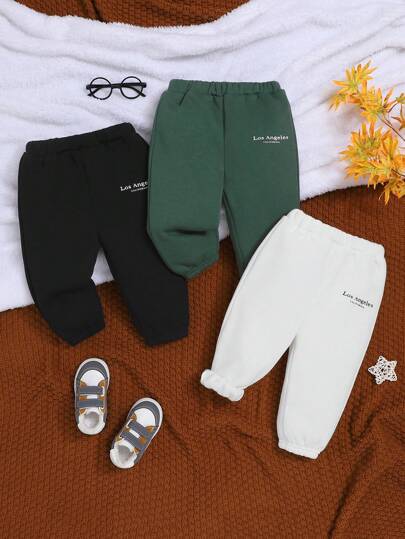 SHEIN 男嬰 3 入組字母圖案保暖運動褲 - 黑與白 - 查看 1