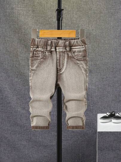 SHEIN 男孩斜口袋彈性腰帶牛仔褲 - 咖啡棕 - 查看 1