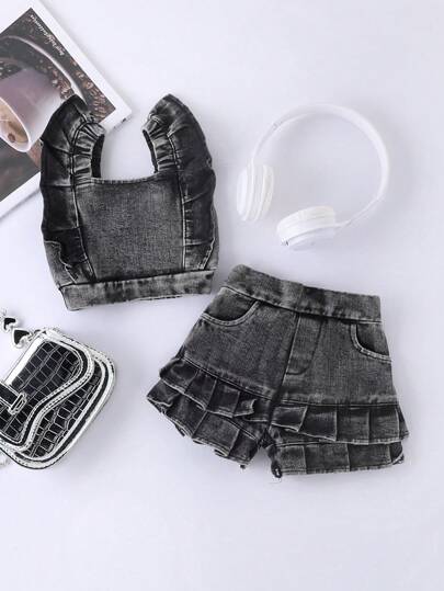 SHEIN 女婴酷炫牛仔装,夏季 - 黑色 - 查看 1