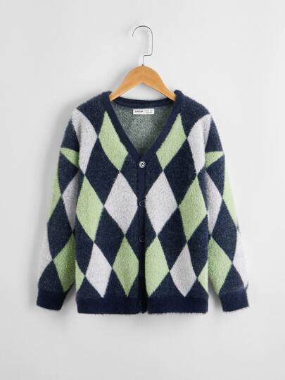 SHEIN 男孩菱形花紋圖案開衫 - 彩色 - 查看 1