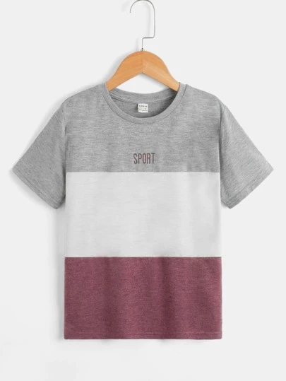 SHEIN 男孩字母圖案撞色T恤 - 彩色 - 查看 1