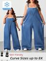 SHEIN CURVE+ 大码女式春夏纯色圆领灯笼袖荷叶边下摆宽松休闲连衣裙长款女装/秋冬