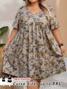 SHEIN CURVE+ 2025 大码女式纯色短袖春季 A 字褶饰拼接长裙,曲线加大,Hoho 度假