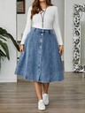 SHEIN CURVE+ 2025 大码女式纯色短袖春季 A 字褶饰拼接长裙,曲线加大,Hoho 度假