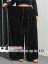 SHEIN CURVE+ 大码女式秋冬返校休闲家居服家居服瑜伽舒适户外纯黑色针织松紧腰高腰口袋喇叭腿裤,带口袋的紧身裤