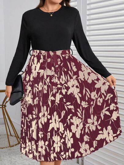 SHEIN Clasi 大碼印花百褶下擺洋裝 - 紅白色 - 查看 1