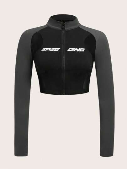 SHEIN EZwear 大尺寸字母印花拉鍊門襟 T 卹 - 彩色 - 查看 1